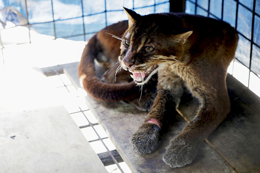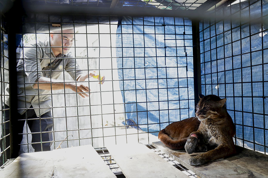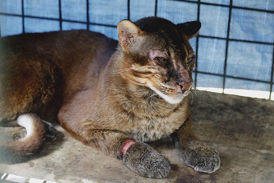 Balai Konservasi Sumber Daya Alam [BKSDA] Aceh harus merawat seekor kucing emas atau Asiatic Golden Cat [Catopuma temminckii], yang kakinya terluka akibat jerat.