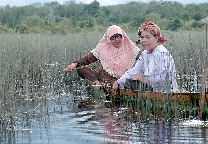 - Perempuan di Pedamaran di Kabupaten Ogan Komering Ilir [OKI], Sumatera Selatan, mempersoalkan rusak dan habisnya rawa gambut dalam karya sastra tutur.