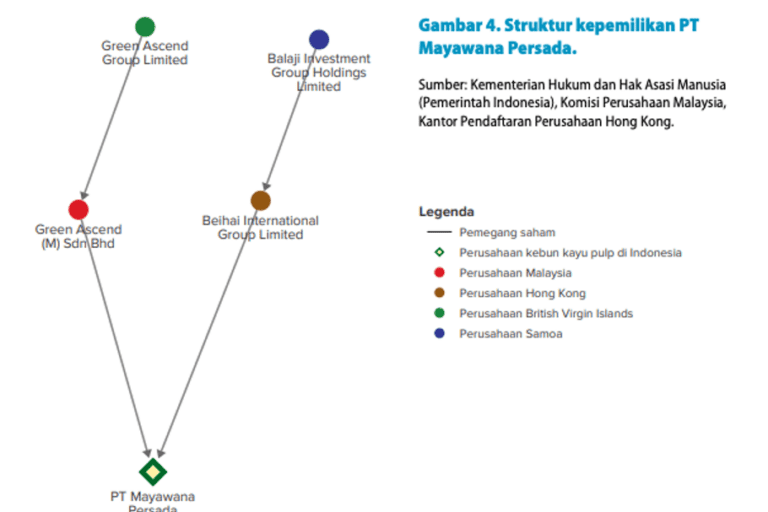 Indikasi keterkaitan itu berdasarkan kesamaan aktor yang terlibat di Mayawana dengan perusahaan lain yang diduga di bawah kendali grup RGE, hubungan pasokan bahan baku, dan beberapa aspek lainnya.
