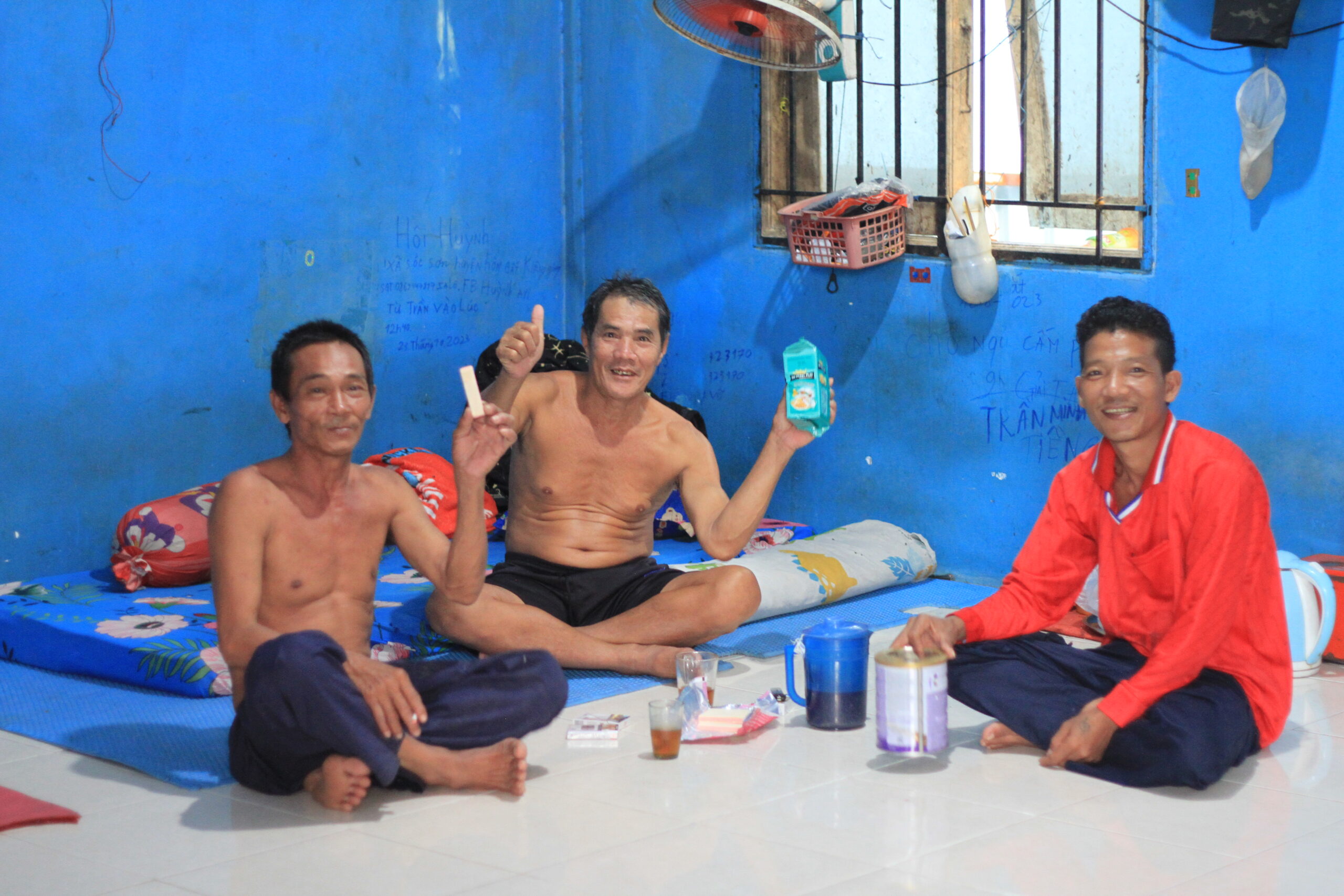 Di dalam rumah penampungan terlihat beberapa orang anak buah kapal (ABK) KIA Vietnam. Sebagian mereka ada yang bersantai, makan bersama, main kartu, hingga menjemur ikan asin untuk dijadikan makan siang. Mereka ini merupakan nelayan KIA Vietnam yang kedapatan mencuri ikan di perairan Indonesia (Laut Natuna Utara).