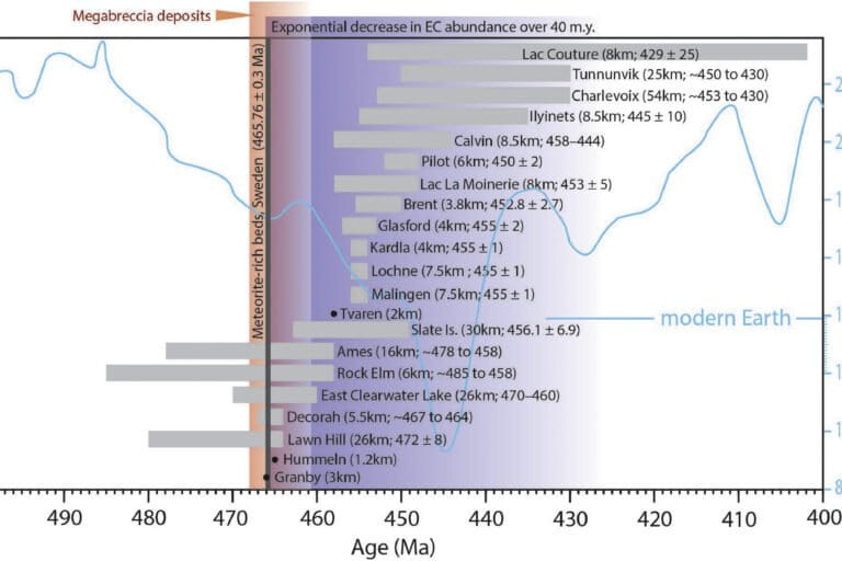 Dalam studi tersebut, tim peneliti menggunakan rekonstruksi tektonik lempeng untuk periode Ordovisium. Mereka mencatat adanya pola aneh dari 21 situs kawah yang tercipta oleh puing-puing yang jatuh dari asteroid besar, semuanya terletak dalam jarak 30 derajat dari khatulistiwa. Biasanya, asteroid menghantam Bumi secara acak di berbagai lokasi, namun dalam hal ini, semua kawah berada dekat dengan garis khatulistiwa, sebuah pola yang sulit dijelaskan dengan teori konvensional.