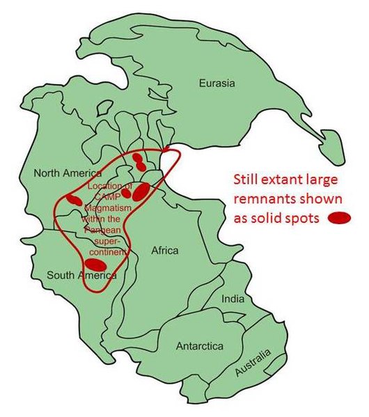 Letusan gunung berapi yang dahsyat ini, termasuk yang terjadi di Wrangellia Terrane (kini berada di wilayah barat laut Amerika Utara, antara Alaska dan British Columbia), melepaskan volume besar gas-gas rumah kaca, seperti karbon dioksida (CO₂) dan metana (CH₄), ke atmosfer. Akibatnya, terjadi efek rumah kaca yang sangat kuat, memicu pemanasan global.