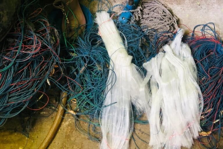Siang itu, Syamsiah sedang mengerjakan jaring tangkap pesanan tetangga. Satu jaring biasa paling cepat selesai dua malam, upahnya 20.000 per jaring. “Biasa sampai jam satu malam ku kerja, kalo cepat selesai cepat ki dapat uang” katanya saat ditemui pada Juni lalu.