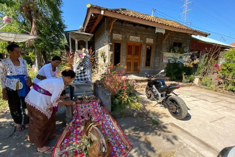 “Orang Bali itu jadi contoh di sana. Air full, setiap hari mengalir besar. Belum punya sapi, mengolah lahan manual dengan sabit. Padi tumbuh.” Wajahnya berseri mengingat masa transmigrasi di Timor Timur.