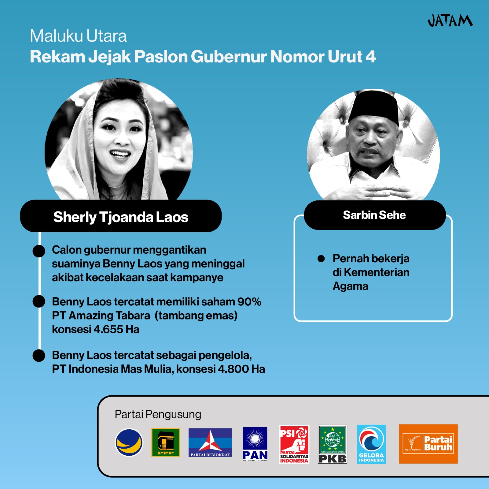 - Supriadi Sudirman, aktivis lingkungan Save Sagea, mengatakan, para kandidat calon bupati dan calon gubernur Malut hanya akan melanggengkan kekuatan oligarki tambang di wilayah-wilayah dengan kekayaan alam terjarah.