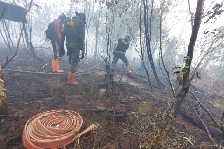 “Kita ditarik-tarik. Kalau sudah di atas eskavator ya, harus pegangan kuat-kuat,” kata Rospina.