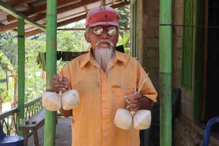 Dia contohkan, gula aren dari nira tandan bunga jantan pohon enau, bisa bikin 5-7 kg per hari seharga Rp15.000 per kg, hasilkan Rp1,8 juta-Rp2,5 juta per bulan. Sekitar Rp1-Rp1,5 juta per bulan dari penjualan hasil pangan seperti ubi jalar, singkong, dan pisang.