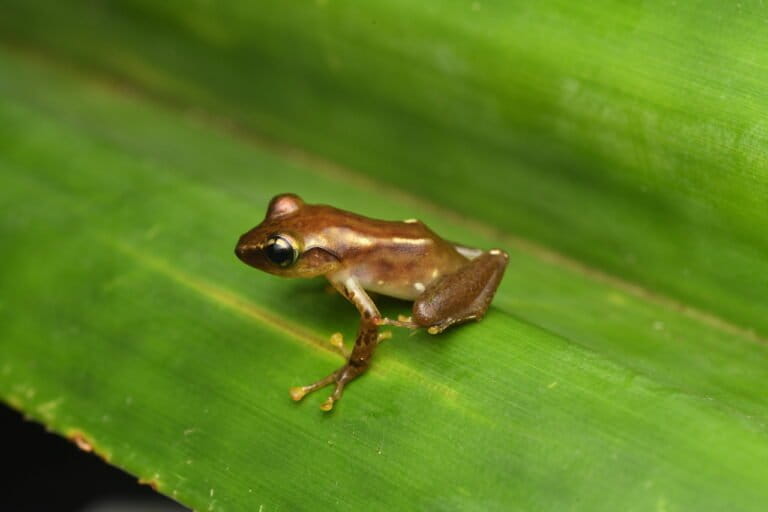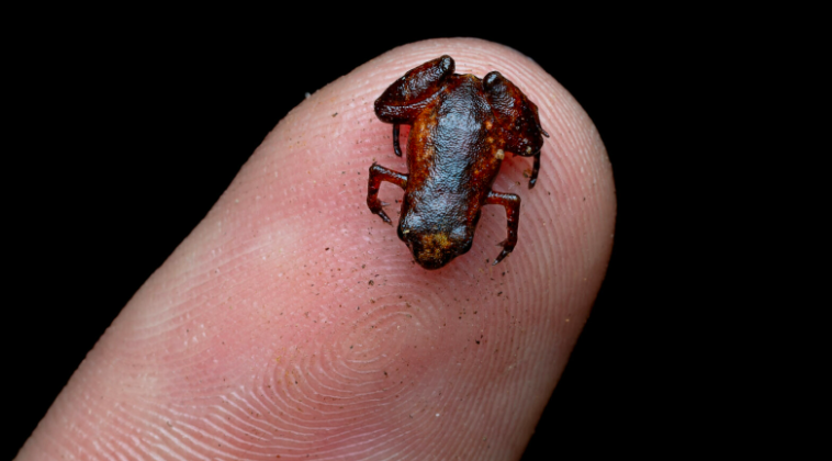 Ditemukan di Hutan Atlantik Brasil, katak mungil ini memiliki panjang hanya 6,95 milimeter—seukuran penghapus pensil. Tidak seperti katak kecil lainnya yang sering kesulitan menjaga keseimbangan, Brachycephalus dacnis mempertahankan struktur telinga dalamnya, memungkinkan mereka melompat dengan anggun hingga 32 kali panjang tubuhnya.