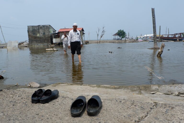 Sejak 2022, gelombang langsung menghantam tembok rumah karena abrasi. Rumah yang dia bangun dari tabungan keluarga bertahun-tahun itu pun ambruk kena gelombang