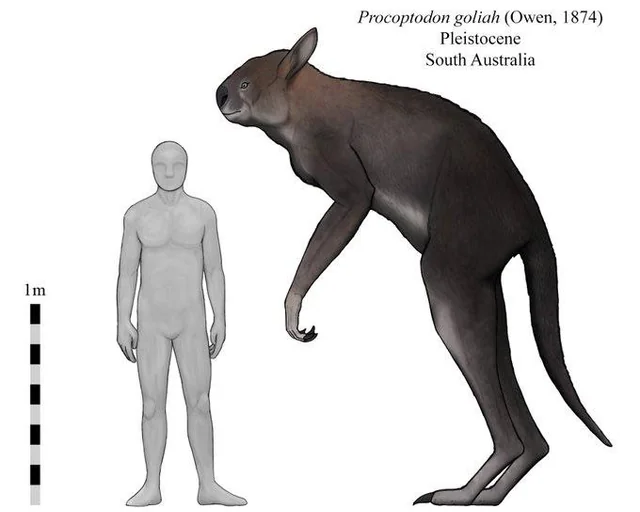 - Kepunahan megafauna Australia, termasuk Procoptodon goliah sekitar 15.000 tahun lalu, diduga disebabkan oleh kombinasi perubahan iklim (kekeringan ekstrem) dan dampak manusia (perburuan dan perubahan habitat), meskipun kontribusi relatif kedua faktor ini masih diperdebatkan.