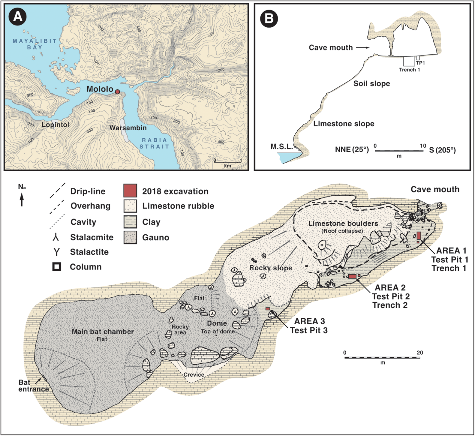 Mereka melakukan ekskavasi di beberapa lokasi di sebuah gua bernama Mololo. Gua ini terletak di Waigo, pulau terbesar dari empat pulau utama Raja Ampat.