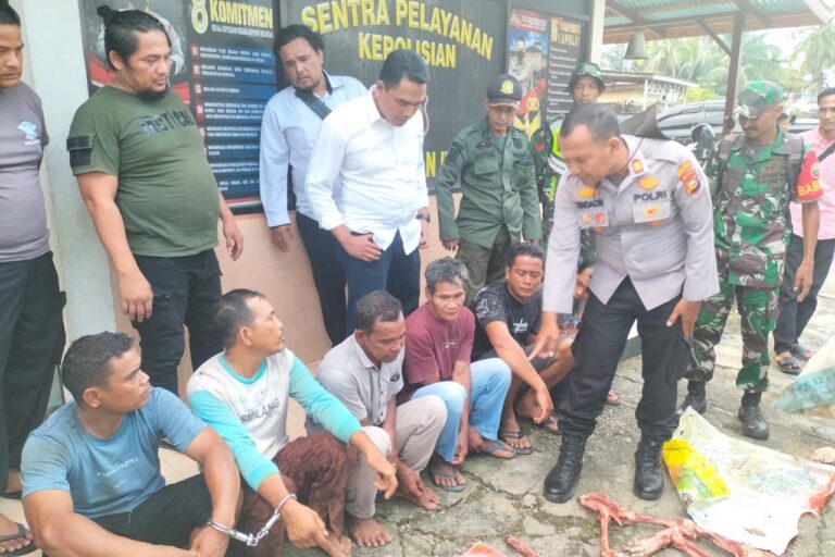 Enam terduga pelaku pun berhasil polisi amankan bekerja sama dengan tim Balai Besar Konservasi Sumber Daya Alam (BBKSDA) Riau.