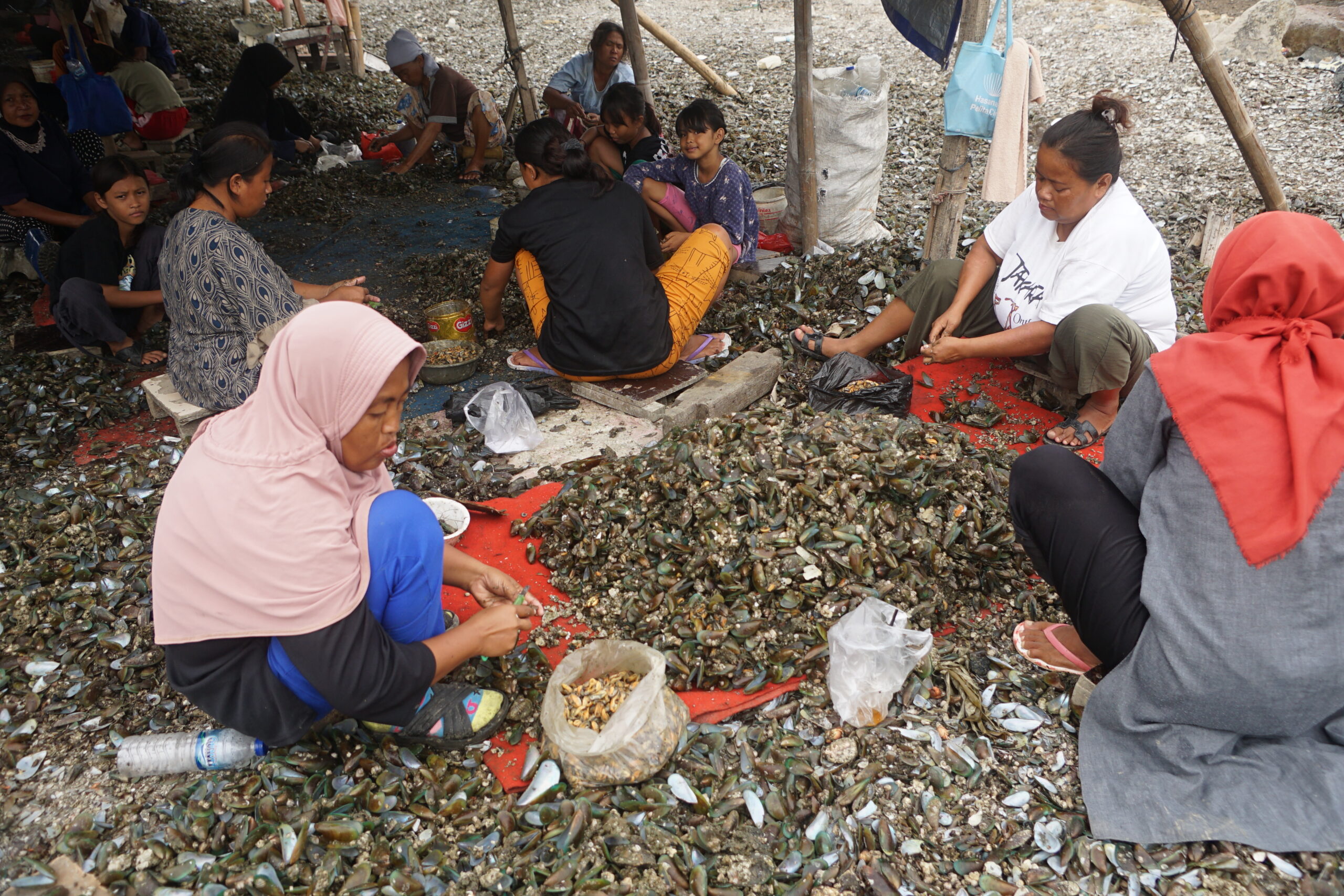 Para lelaki sebagai nelayan, sedangkan perempuan rata-rata ibu rumah tangga. Banyak pula perempuan jadi buruh pengupas kerang hijau di sela mengurus rumah tangga.