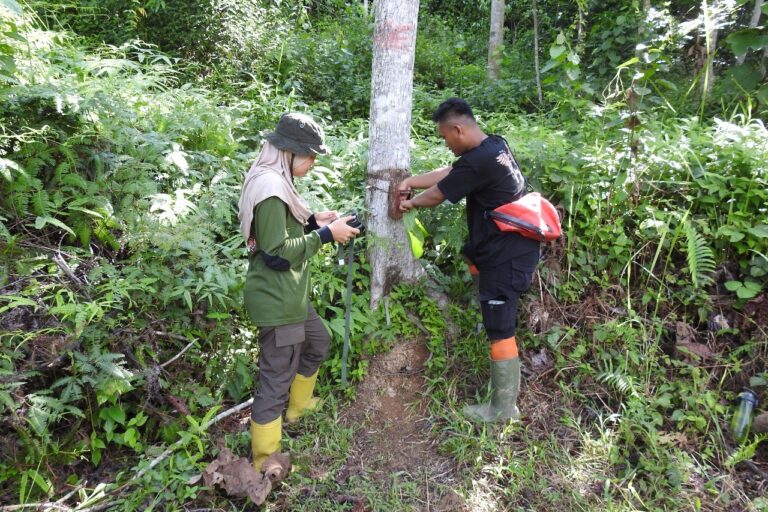 Dia bertugas memasang kamera trap, survei orangutan dan gibon, pekerjaan yang sebagian besar dilakukan laki-laki.
