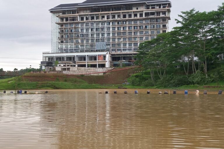 - Sudah tiga bulan Kementerian Lingkungan Hidup (KLH) segel proyek ini tetapi pembangunan KEK MNC Lido tetap berjalan, seperti pantauan Mongabay pada Senin (12/5/25). Pekerja proyek tetap bekerja menyelesaikan konstruksi bangunan. Di proyek Hyatt Regency Lido Resort, pekerja sedang bangun hotel. Mereka mengerjakan konstruksi pada bagian. Pekerjaan proyek hotel bintang lima ini nampak tidak semasif sebelum penyegelan. Hanya ada puluhan pekerja, sebelumnya sampai ratusan orang.