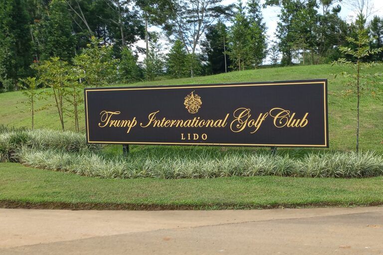 Plang itu terpasang di lokasi: Hyatt Regency Lido Resort—hotel sedang kontruksi. Di sekitar Danau Lido itu ada area golf dan apartemen serta hotel.