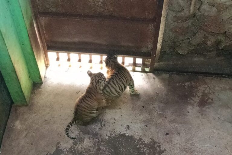 Dua harimau Sumatera (Panthera tigris sumatrae) lahir di Suaka (sanctuary) Harimau Sumatera Barumun, Sumatera Utara (Sumut), akhir Januari lalu. Terlepas dari kabar bahagia kelahiran harimau ini, muncul pertanyaan mengenai ideal atau tidak ‘rumah’ bagi dua anakan harimau ini di tempat rehabilitasi. Lantaran, suaka seharusnya jadi tempat penyelamatan, rehabilitasi fisik, dan perilaku harimau sebelum lepas liar ke habitat asli di alam, bukan pengembangbiakan.