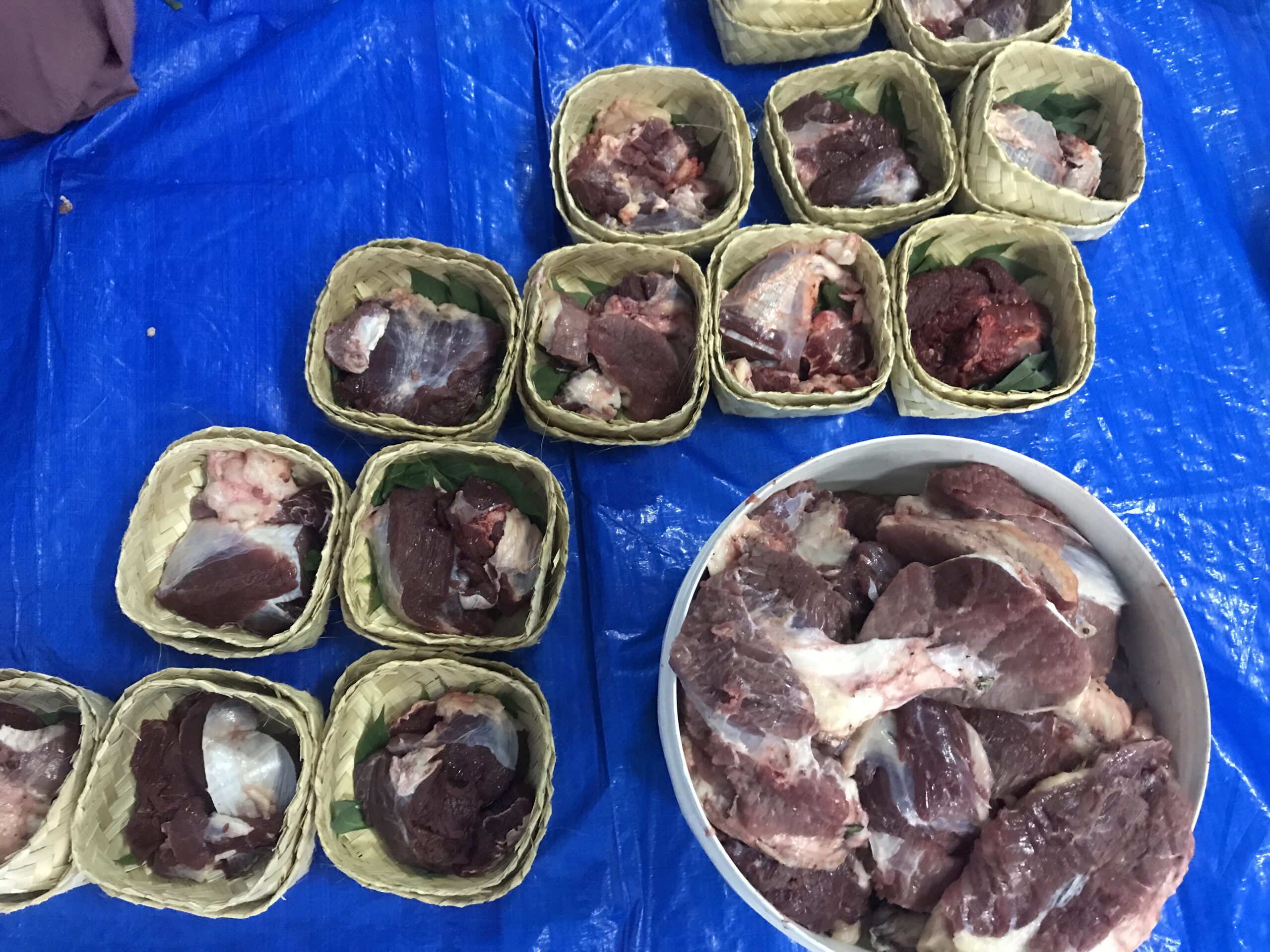 “Tas kresek menyebabkan daging kurban berbau. Sedangkan daun jati lebih sehat,” kata Watini dalam reels Istagram @pulauplastik.