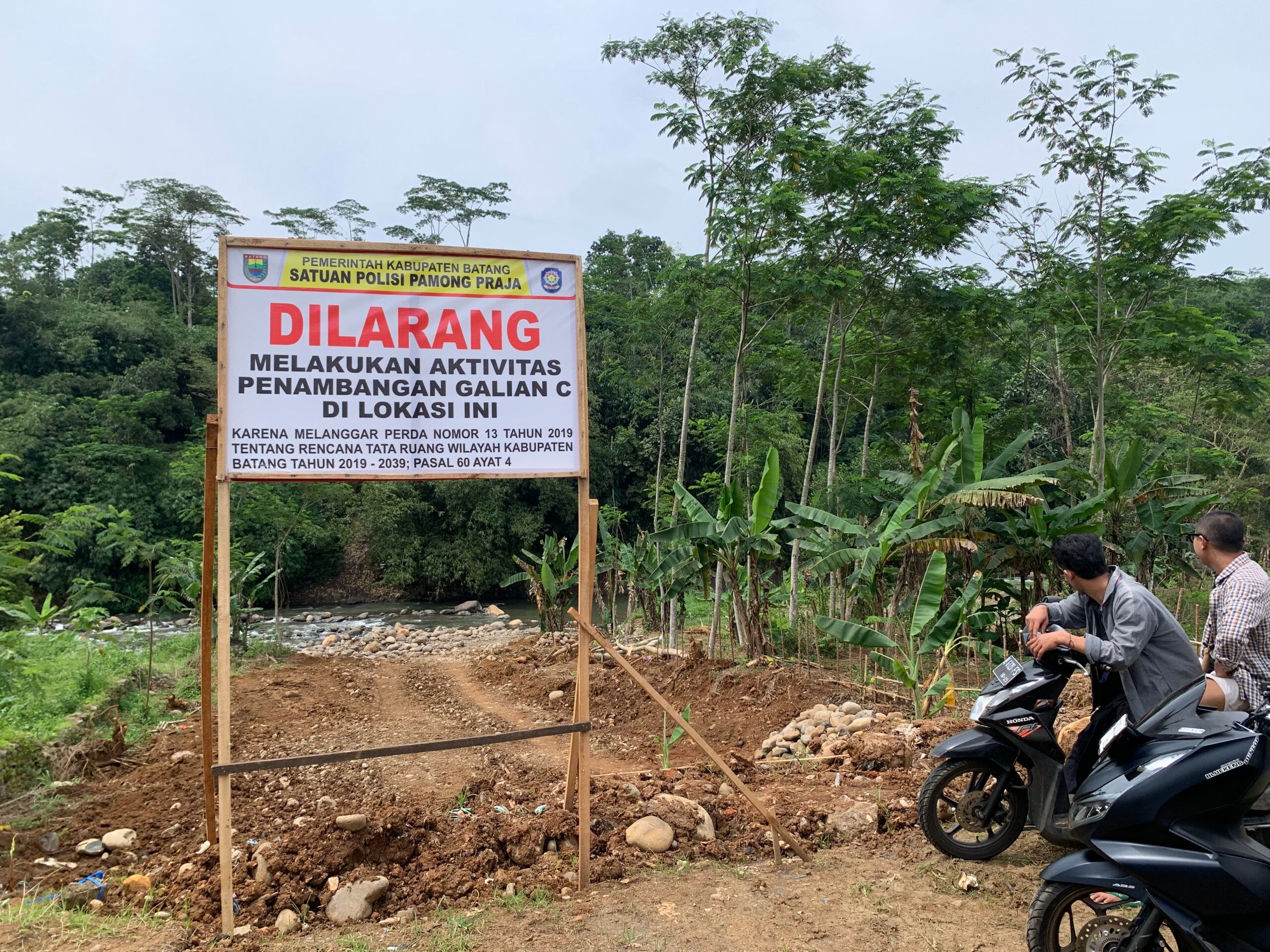 Dalam papan itu tertulis tambang di situ menyalahi Perda Batang Nomor 13 tahun 2019 tentang Rencana Tata Ruang dan Wilayah (RTRW). Dalam perda, Wonotunggal bukan kawasan pertambangan batuan.