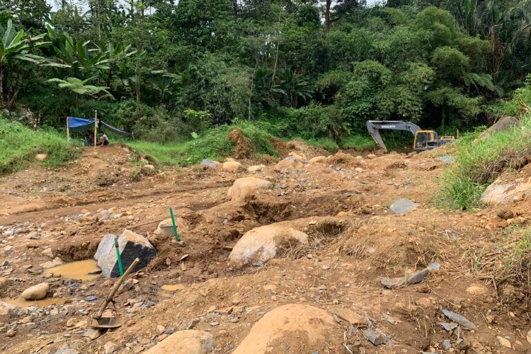 Pertambangan di Adinuso ini menyebabkan kerusakan sempadan sungai sepanjang satu kilometer. Bendungan di dekat lokasi bahkan hampir ambrol karena perubahan arus air karena pengerukan tambang.