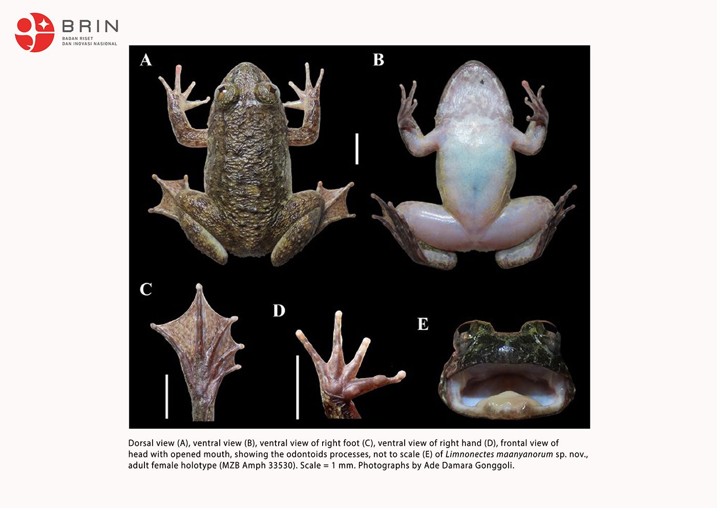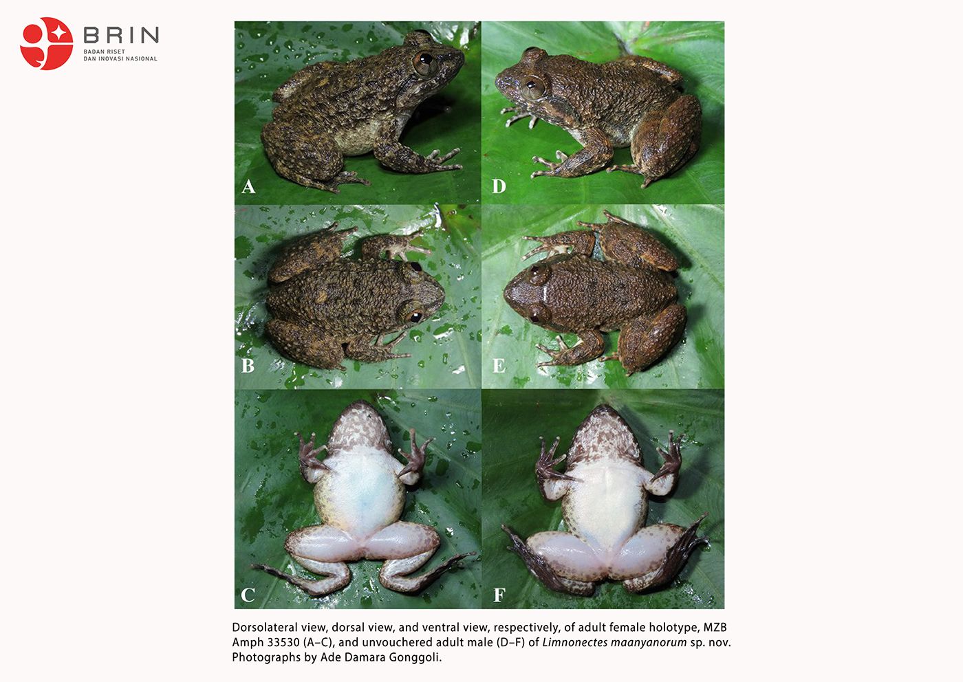 Dikutip dari BRIN, kedua jenis katak tersebut berasal dari genus Limnonectes yang dijuluki Fanged Frog atau katak bertaring. Masing-masing diberi nama Limnonectes maanyanorum sp.nov. dan Limnonectes nusantara sp. nov.