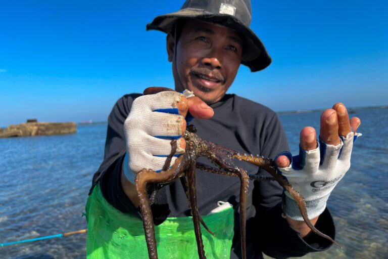 “Kalau surutnya pas dan cuaca bagus, biasa bisa dapat 10 sampai 20 gurita,” katanya.