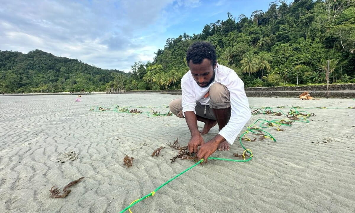Tempat itu dipilih karena berdasarkan pengamatan yang dilakukan, area pasang surutnya cocok untuk membudidayakan rumput laut. “Semoga rumput laut yang ditanam ini dapat berkembang di Niap,” ucapnya penuh asa (15/08/2025).