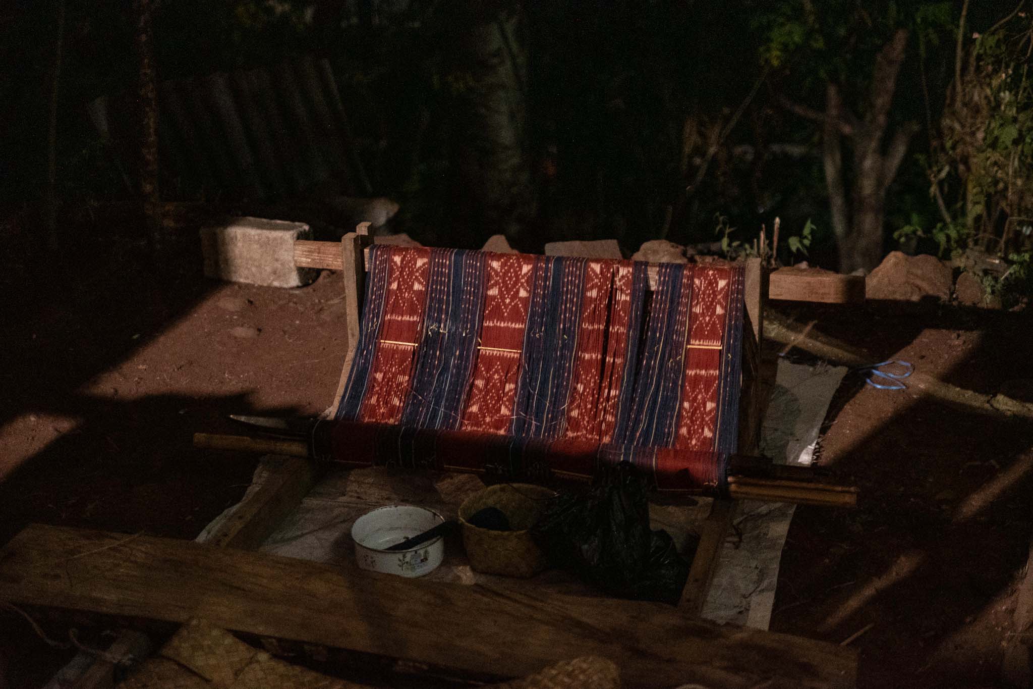 Menjelang malam, Mikael Doni masih menenun di pondok sederhananya, di Desa Tapobali, Kabupaten Lembata, Nusa Tenggara Timur (NTT), Kamis (7/8/2025). Dalam budaya etnis Lamaholot, hanya kaum perempuan yang biasanya menenun, termasuk masyarakat di Desa Tapobali.