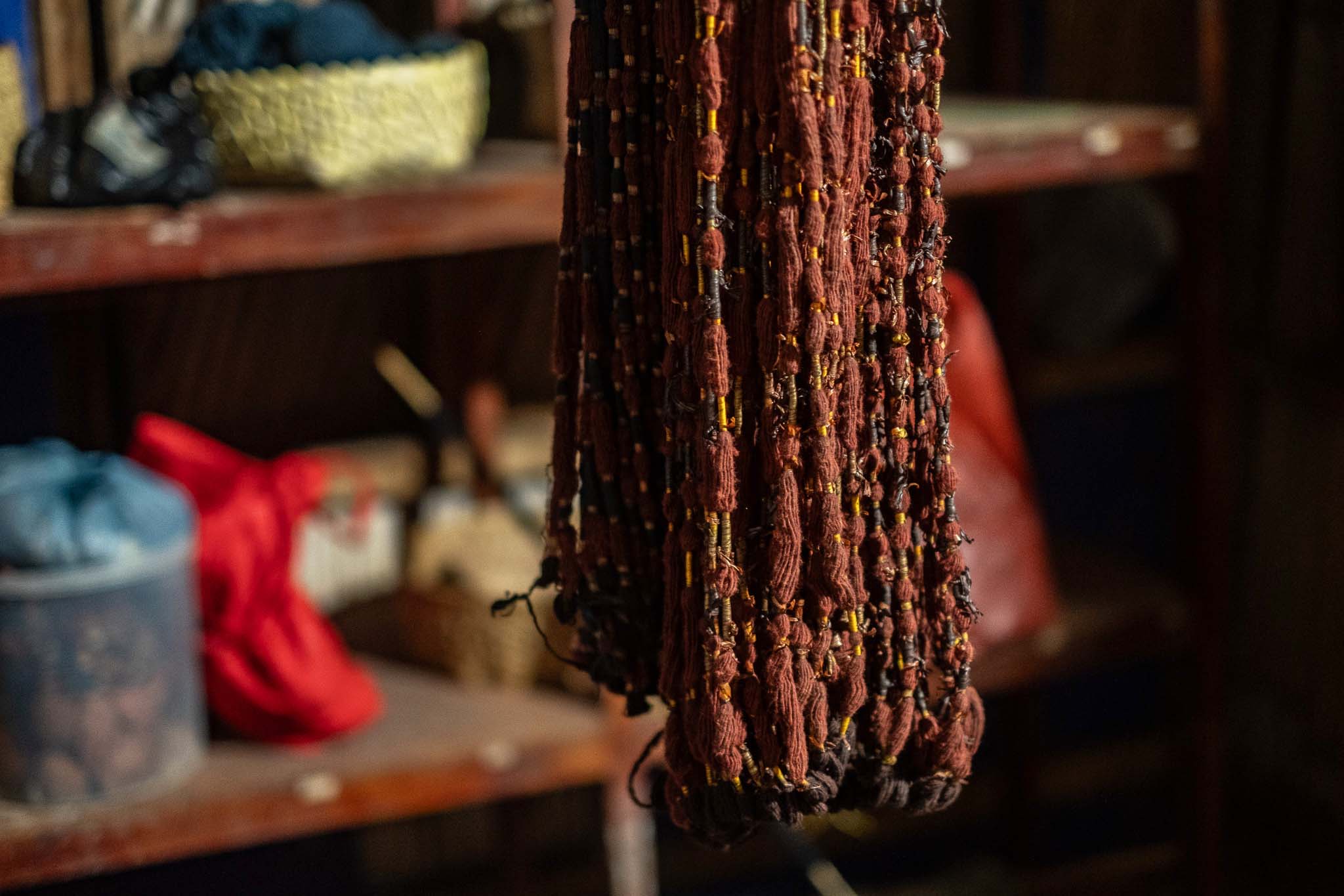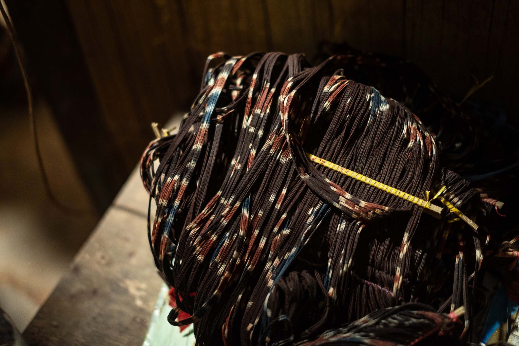 Sisa benang hasil tenun dan ampas pewarna, dikumpulkan dan dikubur pada tempat khusus.