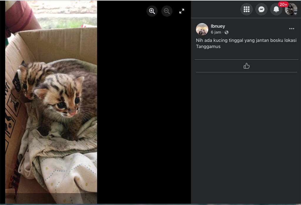 Saat memantau perdagangan owa, pangolin, maupun Macaca di media sosial, dokter hewan jebolan Universitas Gajah Mada (UGM) ini, berkali menemukan kucing hutan diperjualbelikan. Platform yang digunakan beragam, skalanya tidak kecil.