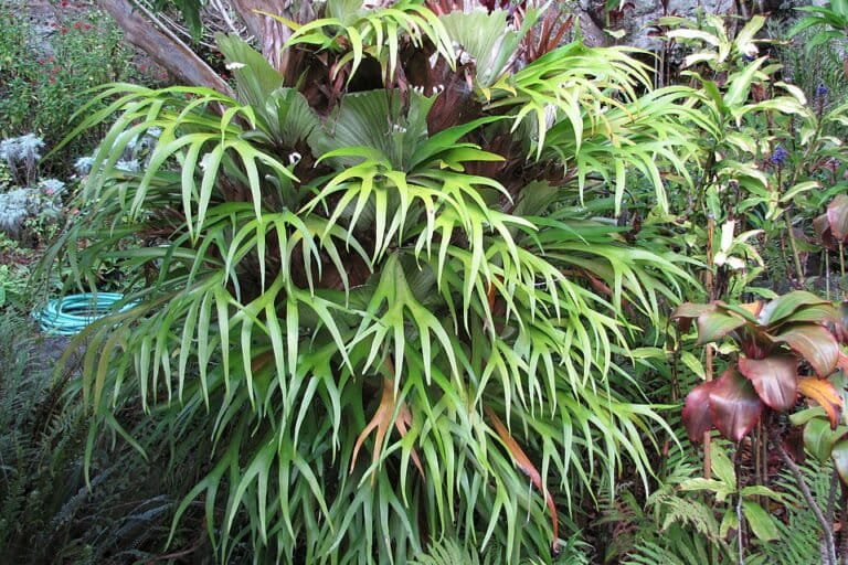 Di antara jenis pakis itu, Platycerium bifurcatum atau pakis tanduk rusa adalah salah satu yang paling menonjol. Tumbuhan epifit ini menempel pada pohon atau batu tanpa memerlukan tanah. Penelitian di Kebun Raya Purwodadi mencatat bahwa pakis tanduk rusa mampu hidup pada sedikitnya 14 spesies pohon inang, sebuah strategi adaptasi yang membantu keberlangsungan sejak jutaan tahun lalu. Kemampuannya menempel di berbagai inang menunjukkan fleksibilitas ekologis yang tinggi, memungkinkan pakis ini bertahan di berbagai tipe hutan.