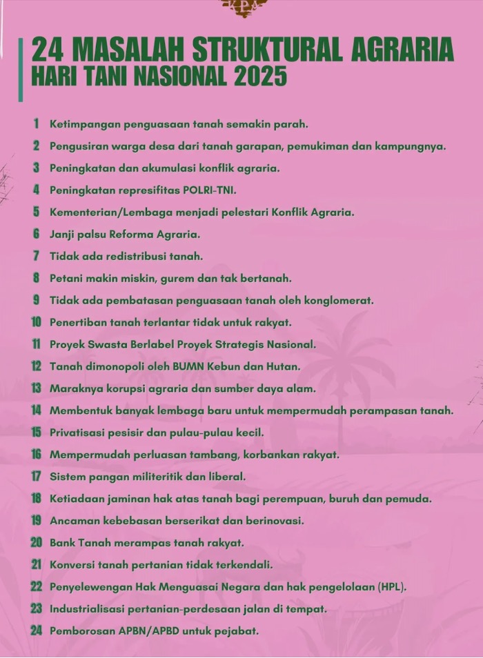 Hari Tani 2025: Kuasa Tanah Timpang, Konflik Agraria Terus Terjadi