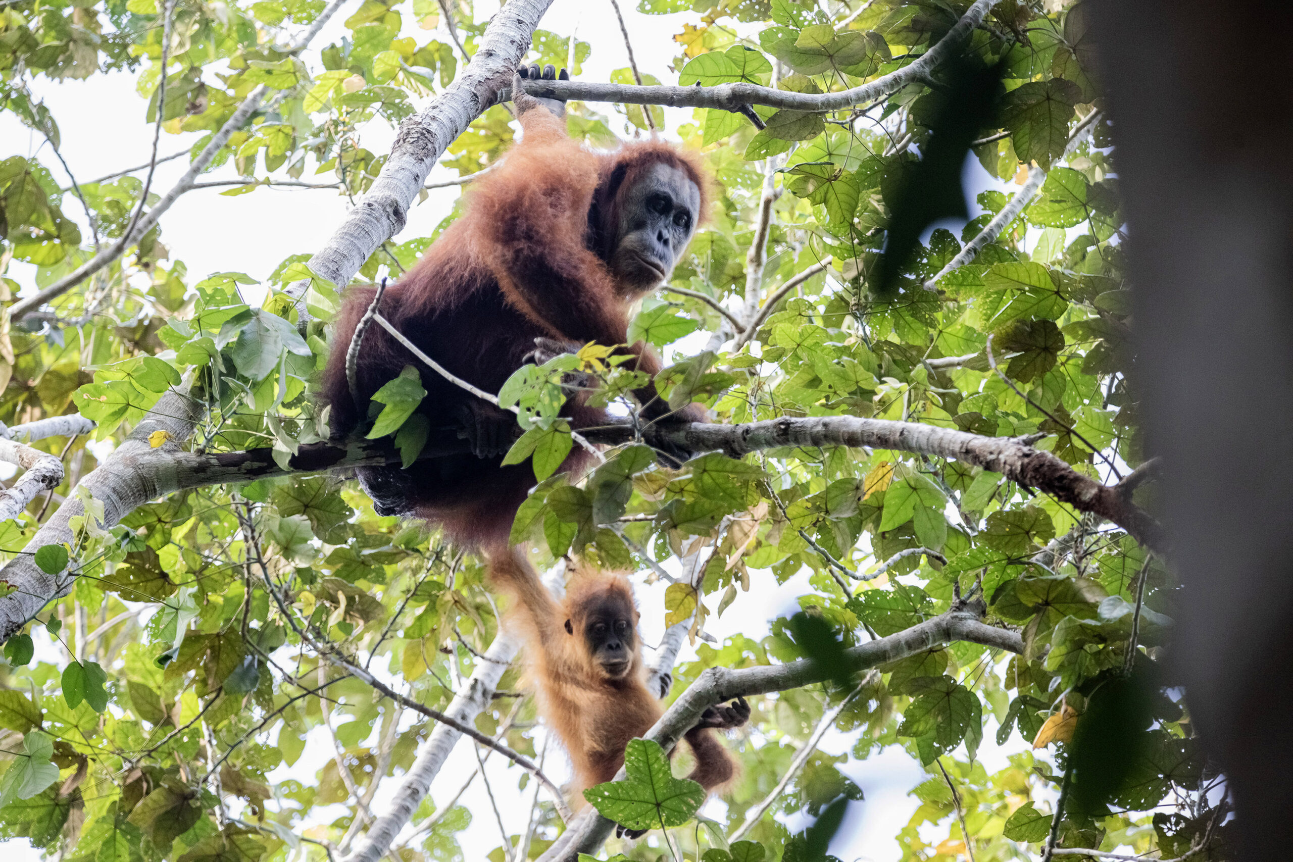 Saat perjumpaan berlangsung, terdapat dua individu orangutan tapanuli, induk dan anak. Diperlukan waktu tiga jam lebih perjalanan di dalam hutan, untuk memotret satwa terancam punah tersebut.
