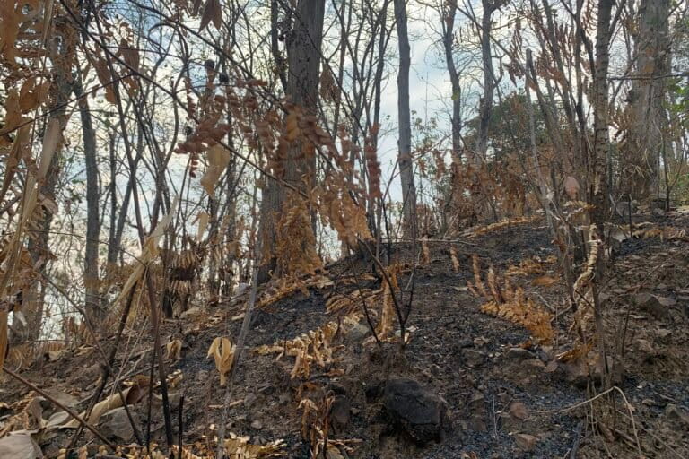 Kawasan yang terbakar hanya memiliki tegakan pohon. Kebanyakan penuh ilalang dan rerumputan yang mengering.