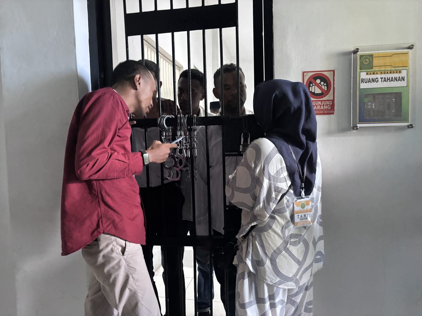 Pertemuan mereka hanya sebatas tatap dari balik pintu besi. Fitri dan Nining, tak kuasa menahan air mata saat Ardi mendekat.