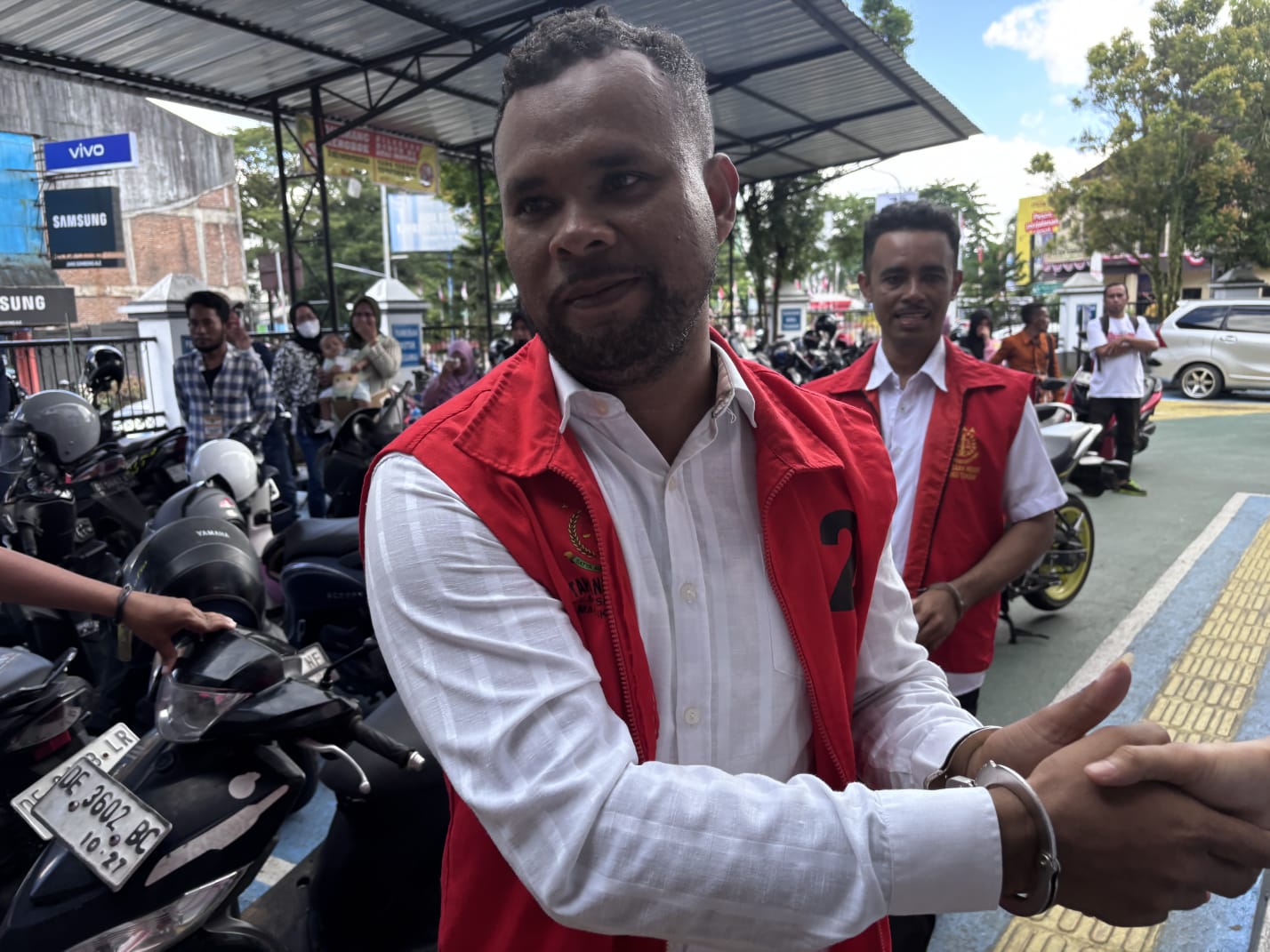 Fitri Yusuf Tuahan menuntun anak balitanya di Pengadilan Negeri (PN) Ambon, Selasa (14/10/25) siang. Adik iparnya, Nining Tuahan, menggenggam beberapa bungkus makanan ringan dan air mineral. Mereka meminta izin petugas pengadilan untuk bertemu Ardi Tuahan, suami Fitri, yang menunggu sidang putusan bersama rekannya Husain (Husein) Mahulauw.