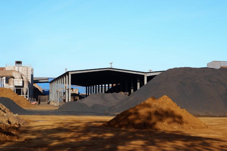 Sisa tumpukan limbah pemurnian menggunung di sekitar area pabrik, tepat bersisihan dengan jalan desa.