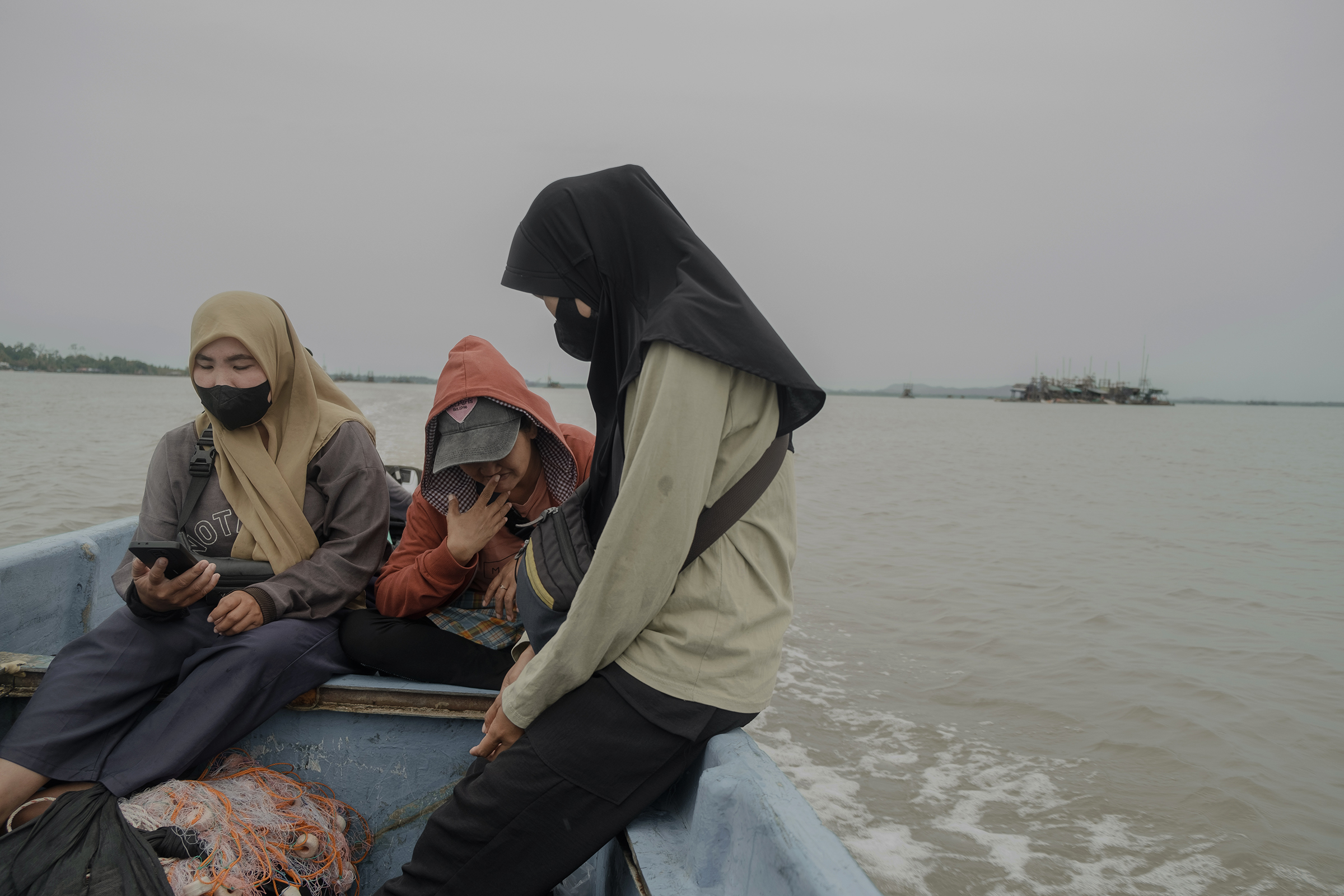 Ani dan dua rekannya masih murung karena tak kunjung mendapat tumpangan perahu untuk nyanting.