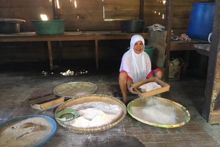 Sayangnya kerusakan sungai berdampak pada budaya pengolahan mereka. Dulu, di pinggir sungai dan dekat kebun, mereka bisa menumbuk batang sagu hingga menghasilkan tepung halus. Sayangnya, Sungai Sangaji kini tak lagi jernih dan berlumpur tambang. Kini untuk mengolahnya butuh biaya besar karena harus sewa orang untuk membawanya ke daratan.