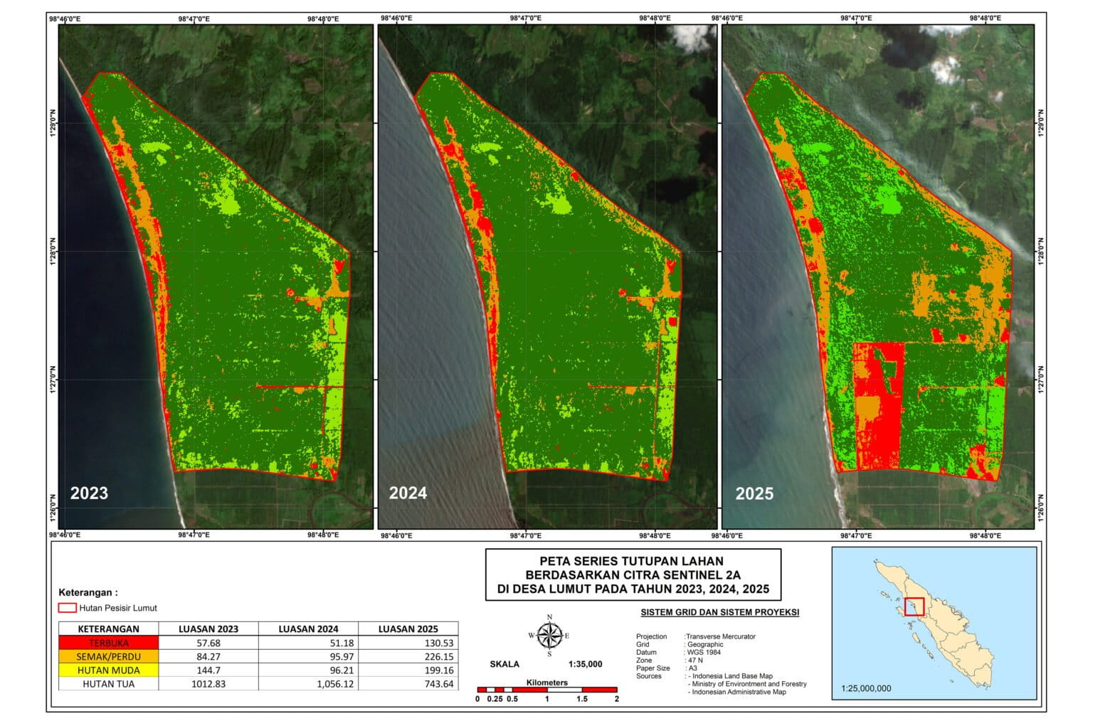 Citra satelit akhir 1990-an menunjukkan Lumut masih hijau, bentang rawa pantai terlihat utuh. Namun ketika tim tiba di lapangan, banyak area telah ditebang dan sebagian dipersiapkan untuk perkebunan sawit.