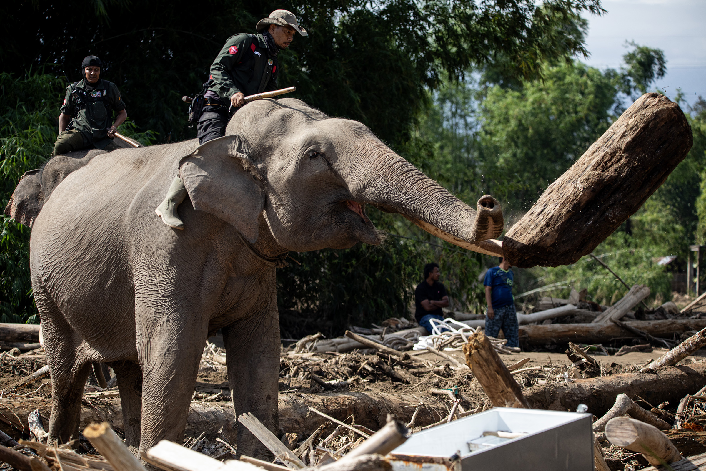 - Balai Konservasi Sumber Daya Alam (BKSDA) Aceh menurunkan empat gajah terlatih untuk mengangkut puing-puing kayu di wilayah Kabupaten Pidie Jaya. Gajah tersebut adalah Midok, Abu, dan Ajis, serta satu gajah betina, Noni.