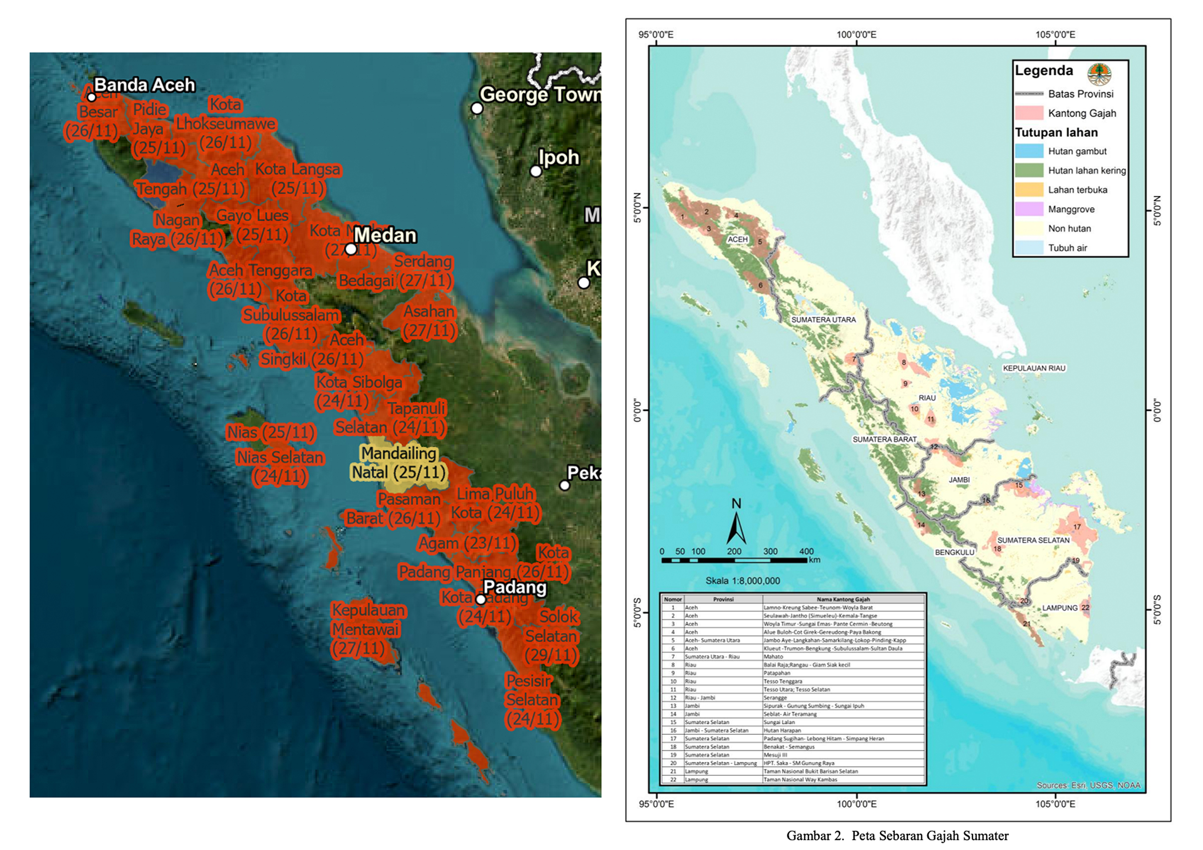 Misalnya, di Kabupaten Aceh Besar, Kabupaten Pidie Jaya, Kabupaten Aceh Tengah, Kabupaten Nagan Raya, dan Kabupaten Gayo Lues. Sementara di Sumatera Utara, kantong habitat gajah yang terdampak banjir berada di sekitar Kabupaten Tapanuli Utara dan Tapanuli Selatan.