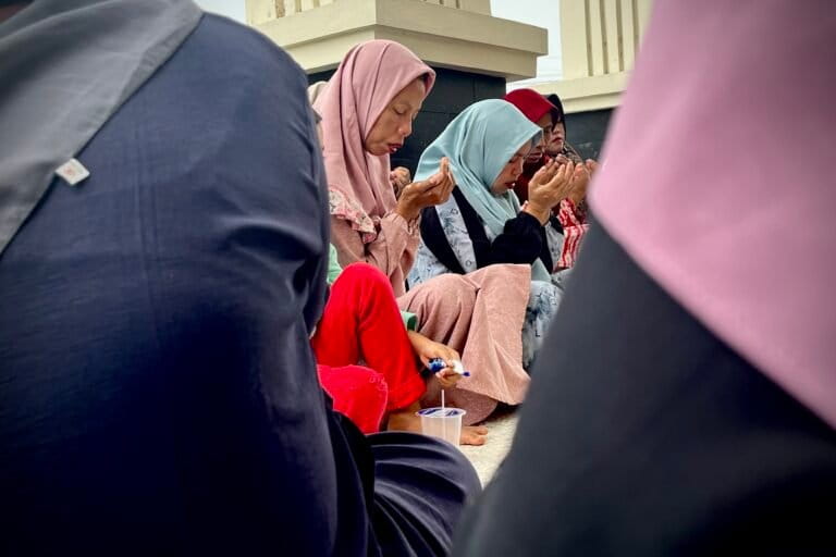 Sebelum berkirim surat, puluhan warga Padarincang menggelar doa bersama di depan Gedung PTUN Serang. Doa bersama atau istighosah jadi tradisi warga Padarincang untuk bersolidaritas. Peserta kebanyakan perempuan terlihat khusyuk.