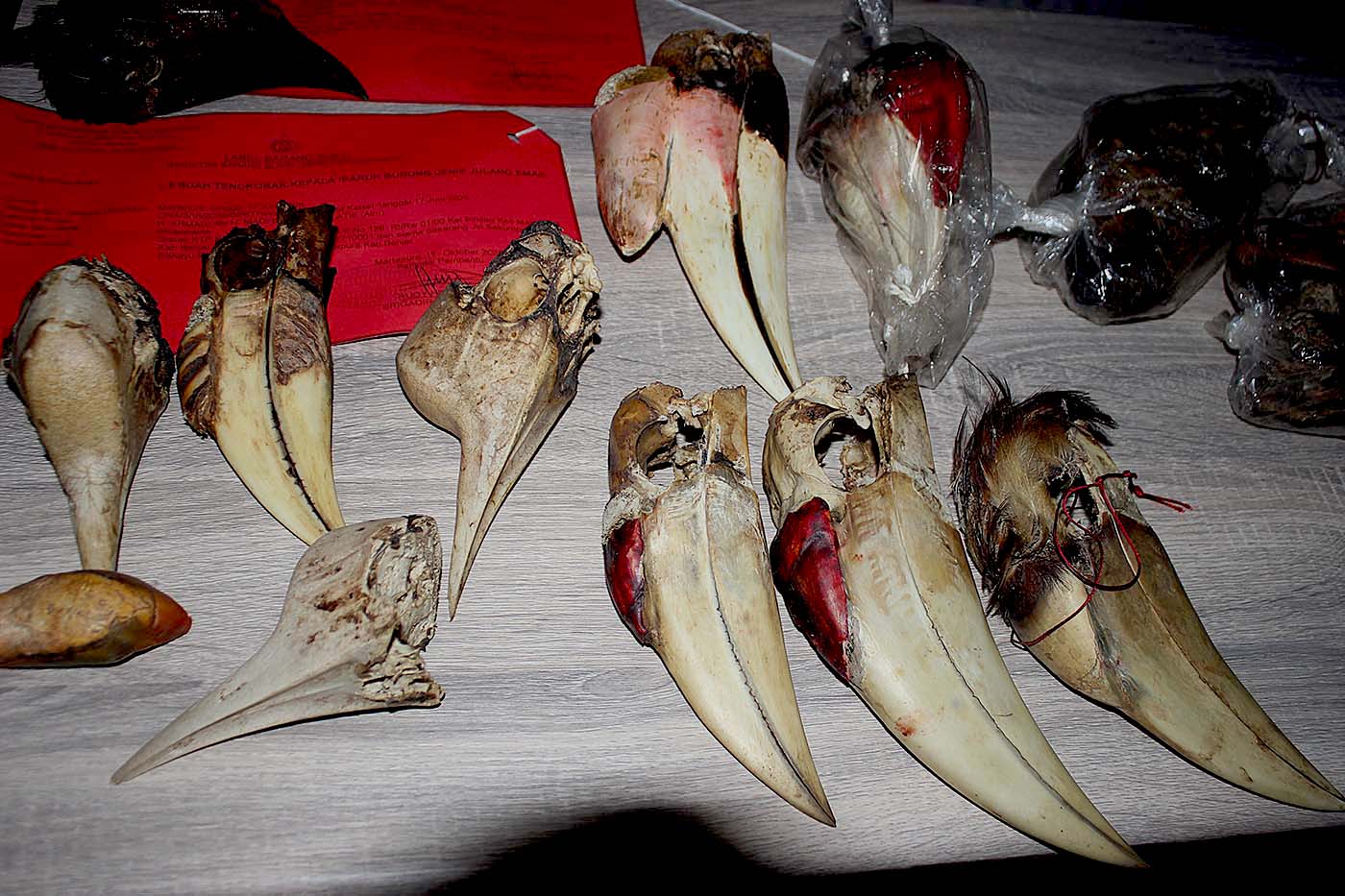 Pada 28 Oktober 2025 lalu, aparat penegak hukum di Kalimantan Selatan mengungkap kasus perdagangan 1.930 bagian tubuh satwa liar dilindungi. Dari jumlah tersebut, terdapat 5 paruh julang emas beserta 621 lembar bulunya, 4 paruh rangkong gading, 3 paruh rangkong badak, dan 1 tengkorak kangkareng hitam.