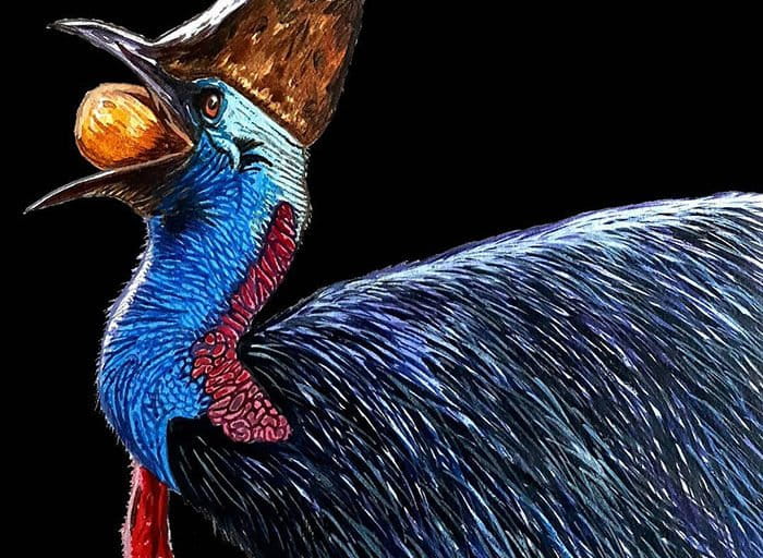 Burung kasuari menjadi salah satu burung terbesar dan paling berbahaya di dunia. Bulu di tubuhnya dominan berwarna hitam legam yang berkilau, namun memiliki ‘mahkota’ khas di kepalanya. Bentuknya seperti tanduk, dikenal dengan casque yang terdiri dari lapisan keratin.
