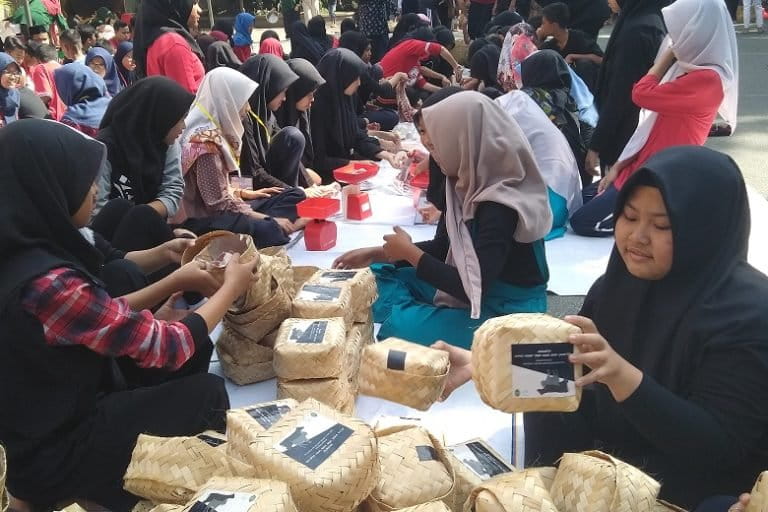 Bagi-bagi Daging Kurban Bebas Plastik dengan Pakai Besek