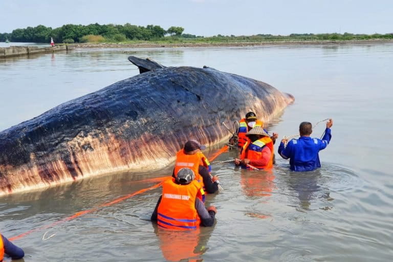 Paus Sperma Seberat 20 Ton Terdampar di Pantai Bungko Cirebon. Bagaimana Selanjutnya?