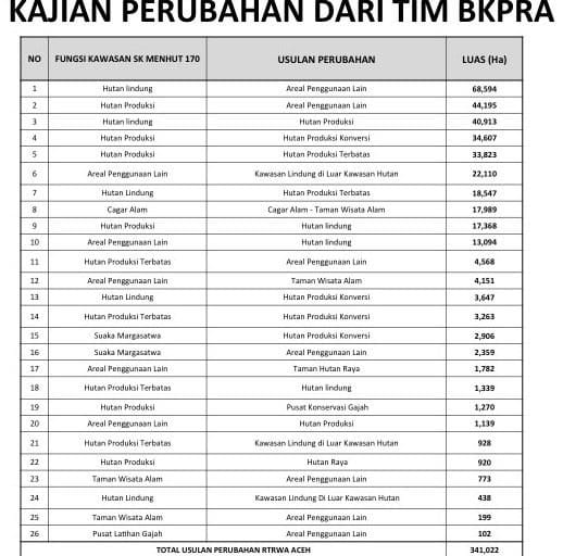 Luas Hutan Aceh Bakal Berkurang 53.000 Hektar