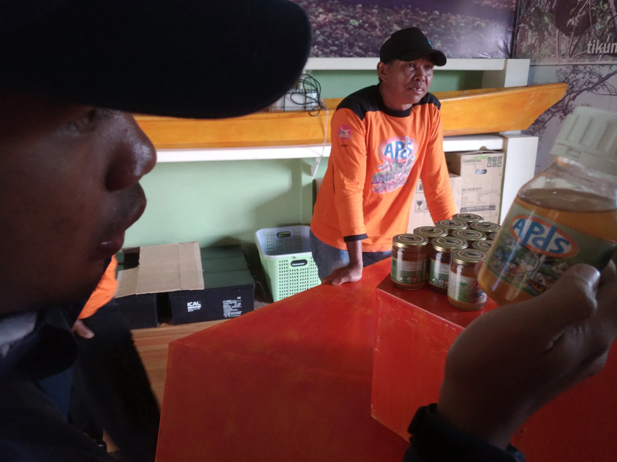 Untuk menghasilkan madu berkualitas, ada standar prosedurnya jug. “Kita harus menggunakan sarung tangan karet, wadah pengangkut tertutup, saringan serta pisau pemotong stainless,” kata Muhammad Erwanto, pengurus APDS lainnya.