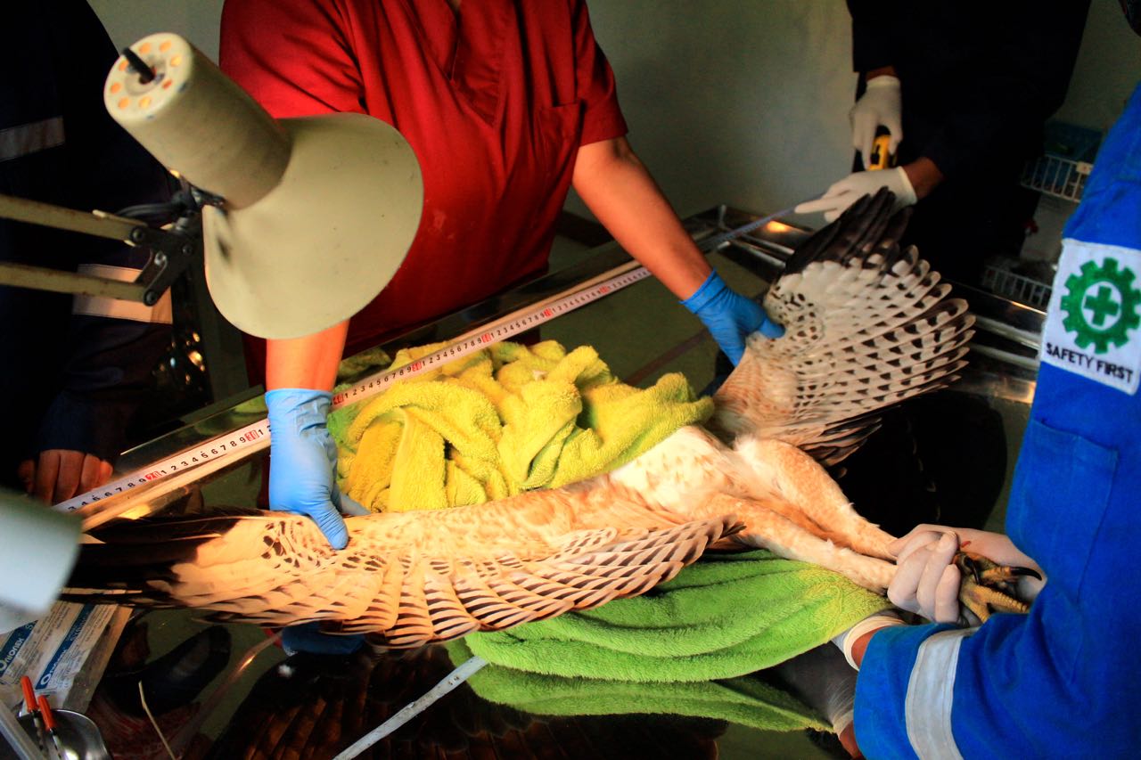 Pada awalnya, pemilik elang tidak punya informasi kemana elangnya harus diserahkan. Setelah memperoleh informasi dari staf Kebun Binatang Ragunan, Jakarta Selatan, elang lalu diserahkan pada pihak BKSDA Purwakara Seksi IV. Pada 20 Juli 2017, BKSDA Purwakarta menjemput elang tersebut ke Karawang yang kemudian langsung dibawa ke PKEK Garut.